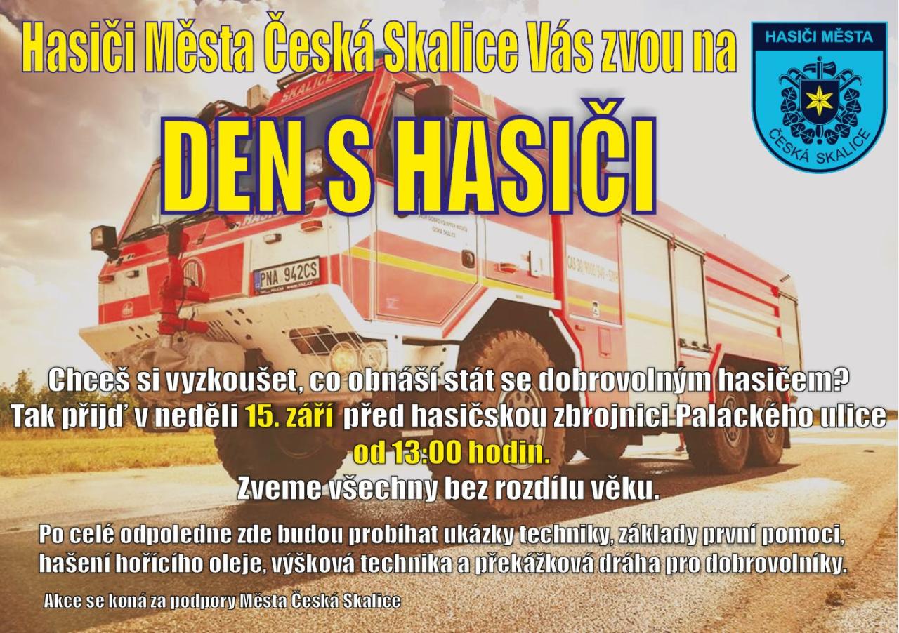 Chceš si vyzkoušet, co obnáší stát se dobrovolným hasičem? Zveme všechny bez rozdílu věku. Akce se koná za podpory města Česká Skalice.
