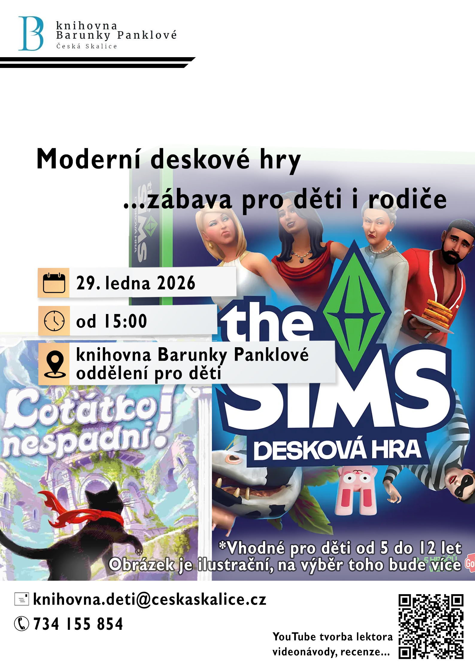 Místo konání: v oddělení pro děti Knihovny Barunky Panklové, Husovo náměstí 20, Česká Skalice