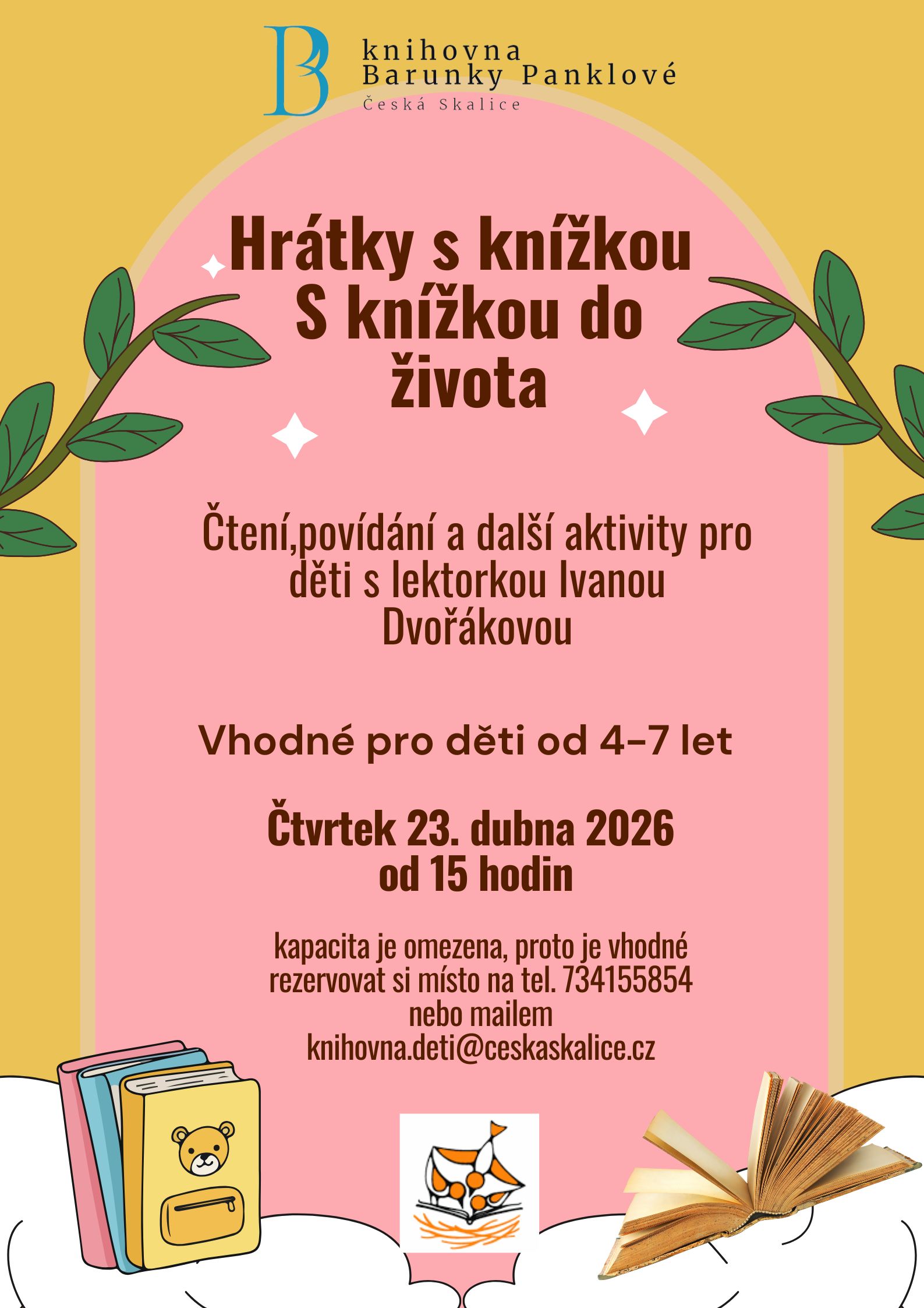 Místo konání: v oddělení pro děti Knihovny Barunky Panklové, Husovo náměstí 20, Česká Skalice