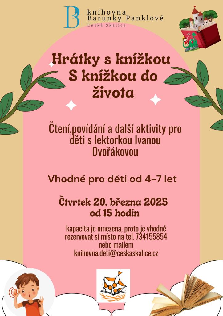 Místo konání: v oddělení pro děti Knihovny Barunky Panklové, Husovo náměstí 20, Česká Skalice