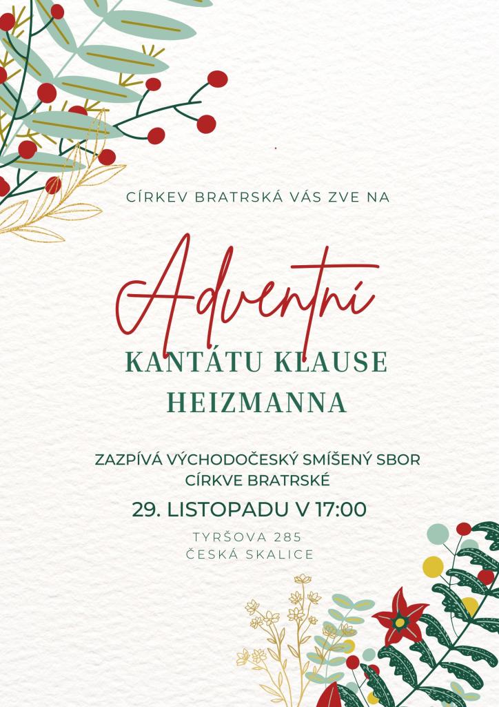KONCERT PĚVECKÉHO SBORU S ADVENTNÍ KANTÁTOU KLAUSE HEIZMANNA 1 Zazpívá východočeských smíšený sbor Církve bratrské, která vás zve na tento koncert.